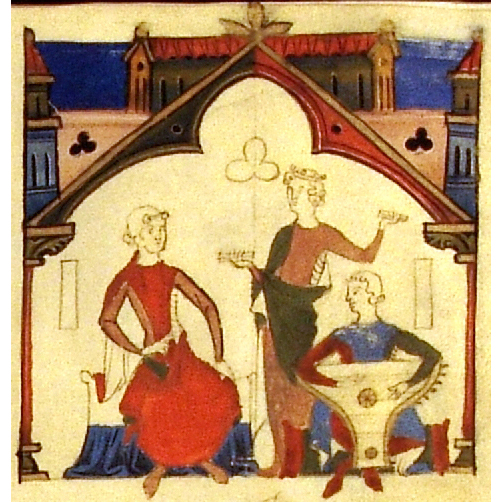 Nobre, bailadeira com castanholas, jogral com saltério de lados côncavos
